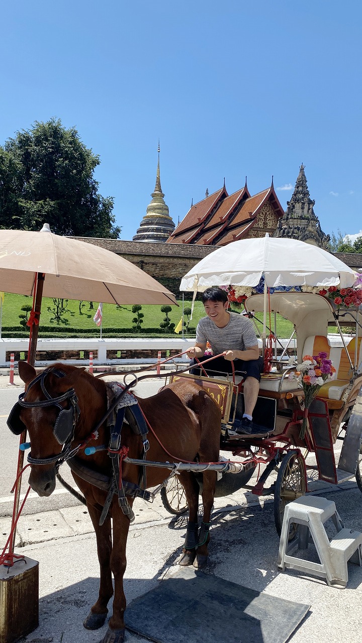 タイ北部で最も美しい寺院といわれるワット・プラタート・ランパーン・ルアンは病院から車で30分ほどの場所にあり、タイに現存する最も古い木造建築物です。馬車に乗る体験もできました。