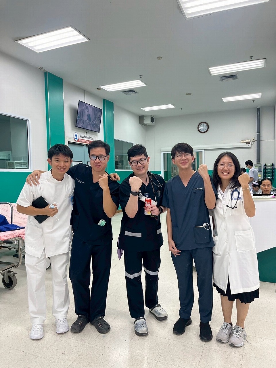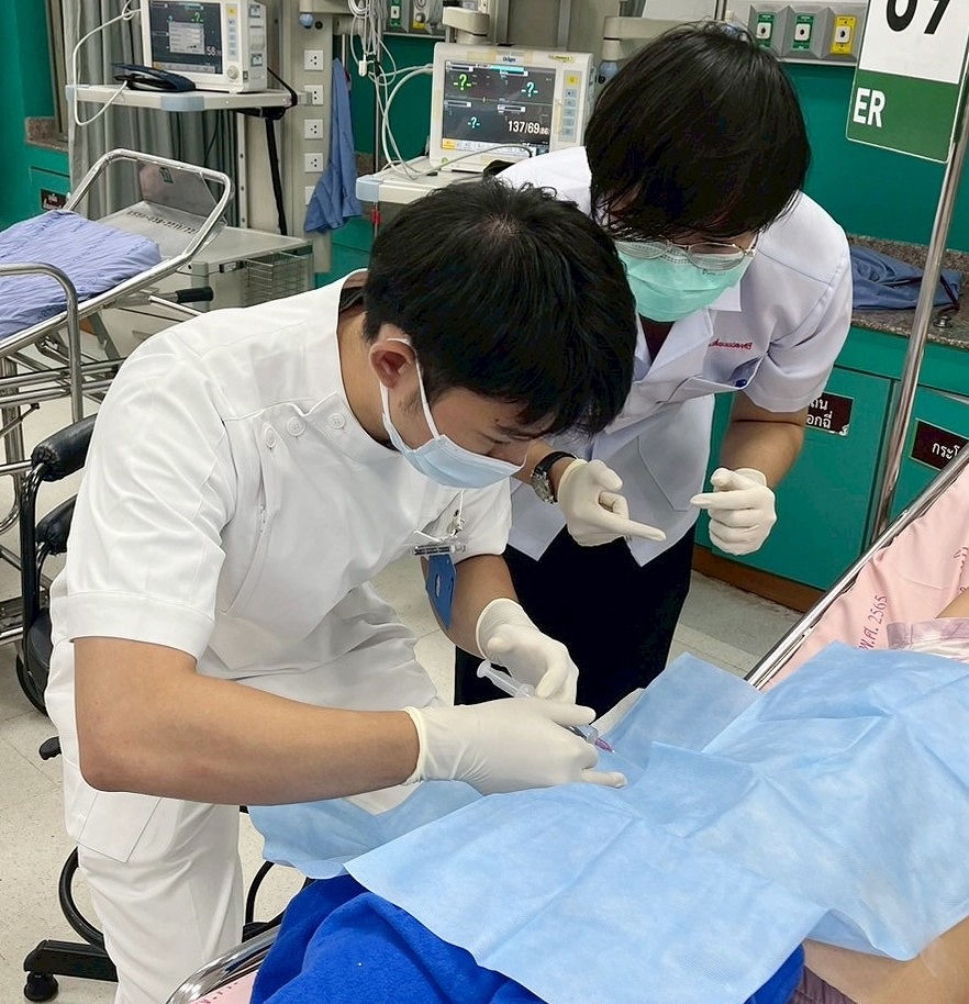特に驚いたのは、救急科での医学生の役割です。タイでは、医学生が患者さんの問診から身体診察、カルテ記入まで一貫して行っており、その責任範囲の広さに驚かされました。また、タイの医学教育が基本的にすべて英語で行われていることを知り、グローバルに活躍できる力を養っていることに感銘を受けました。さらに、医療費の負担の関係で、軽症の患者さんでもクリニックではなく大規模な病院を訪れるケースが多く、救急科が常に逼迫しているという現状も目の当たりにしました。