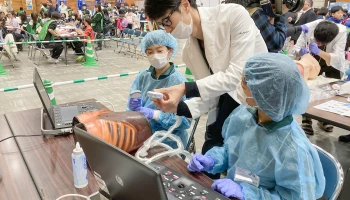 意識がない人の【診察】をして肺に空気を送り、超音波エコーで体の中を見て【検査】し、