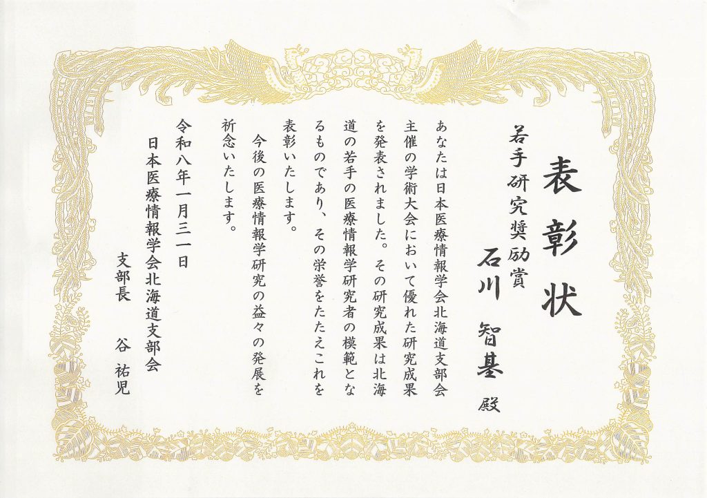 2026年1月31日に開催された日本医療情報学会北海道支部会において、石川智基先生が若手研究奨励賞を受賞されました。おめでとうございます。