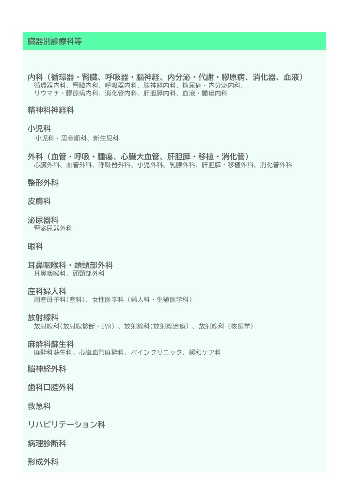 診療科・中央診療施設等