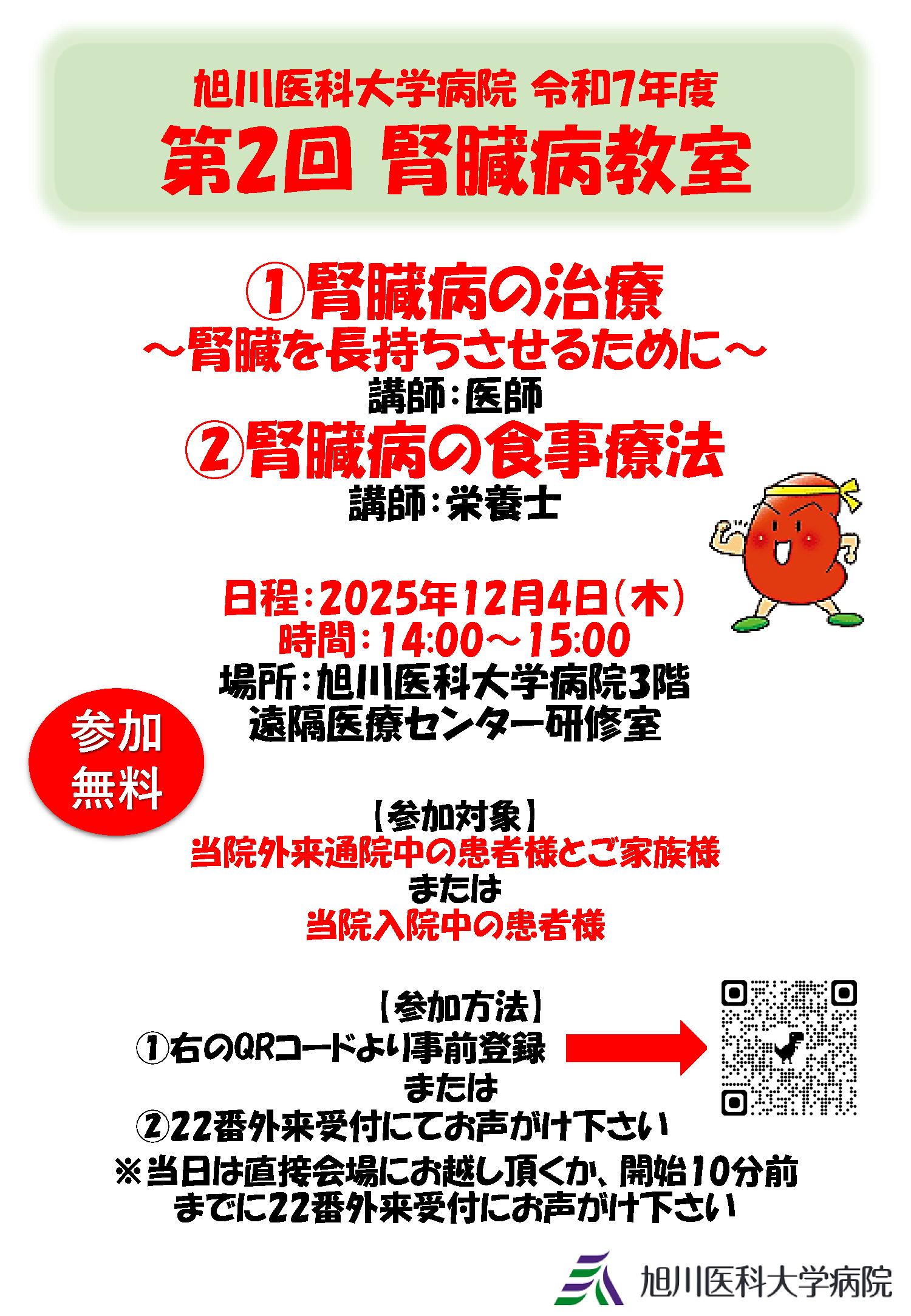 令和7年度第2回腎臓病教室開催のご案内(12/4)
