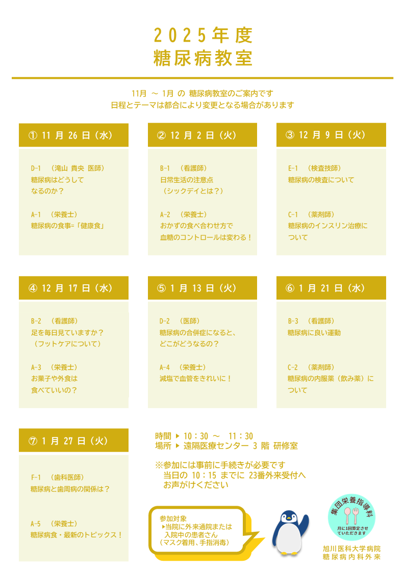 糖尿病専門医、糖尿病療養指導師(看護師、栄養士、薬剤師)も講義の担当をしており、より専門的な知識を得ることができますので、詳細はポスターをご覧ください。