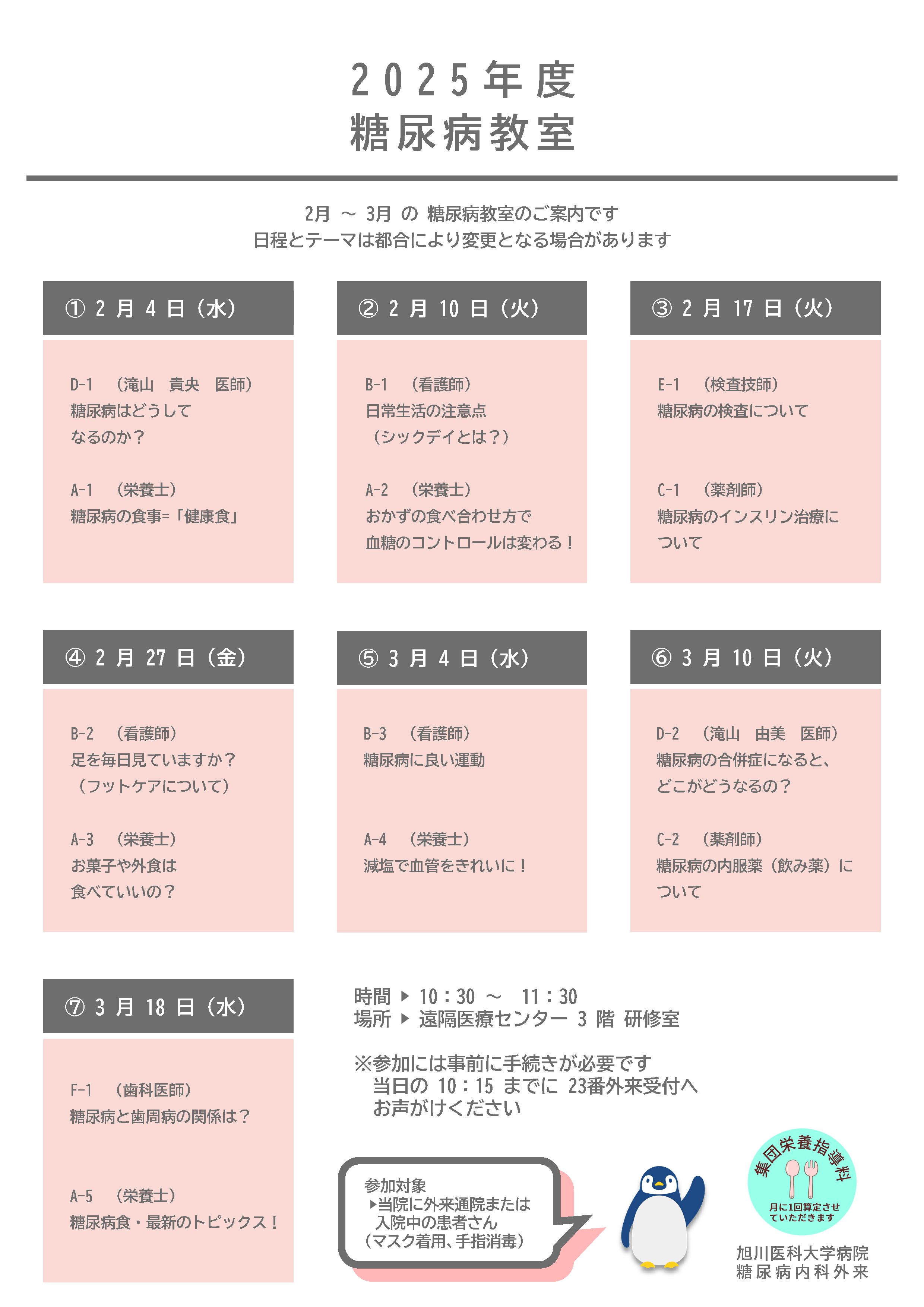 糖尿病専門医、糖尿病療養指導師(看護師、栄養士、薬剤師)も講義の担当をしており、より専門的な知識を得ることができますので、詳細はポスターをご覧ください。
