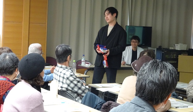 第二部では握力計が登場!1人ずつ測定し数値をメモしたり隣の方と笑いあったりとしていましたね。冬の運動についての安全対策や、サルコペニア予防のための運動メニューの配布等、まさに運動習慣を身につけるための意識が高まるご講演でした。
