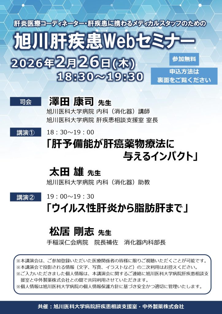 ホーム » セミナー(医療従事者) » 旭川肝疾患WEBセミナー