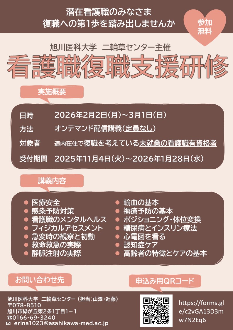 - (R7. 11) 「看護職復職支援研修」開催お知らせ