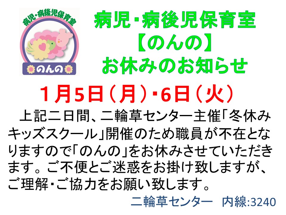 - (R7. 12) 「病児・病後児保育室のんのお休みについて」お知らせ