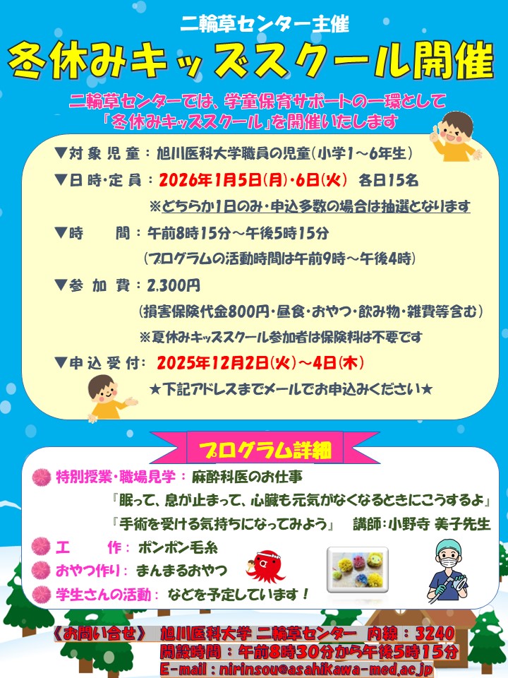 - (R7. 11) 「冬休みキッズスクール」開催お知らせ
