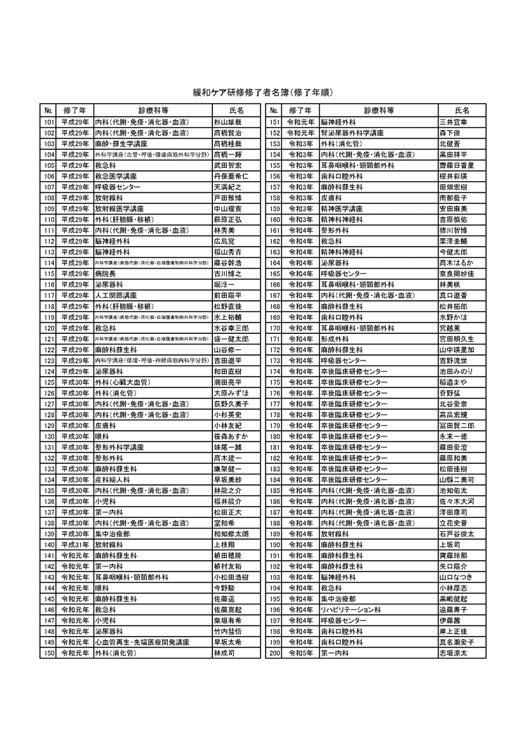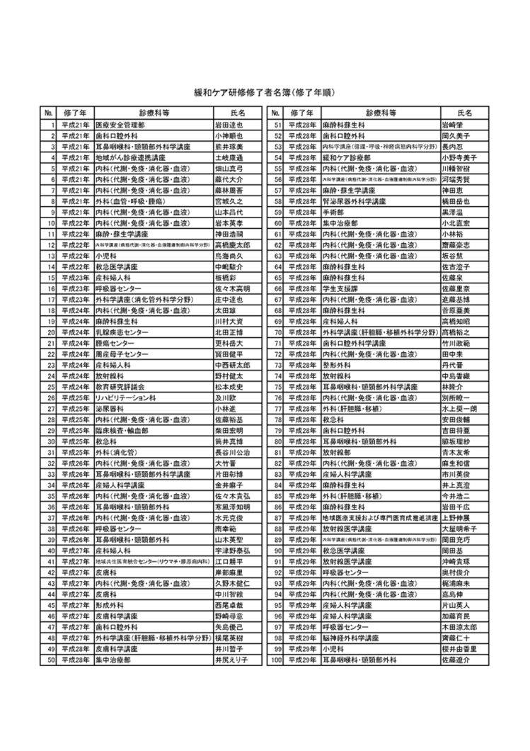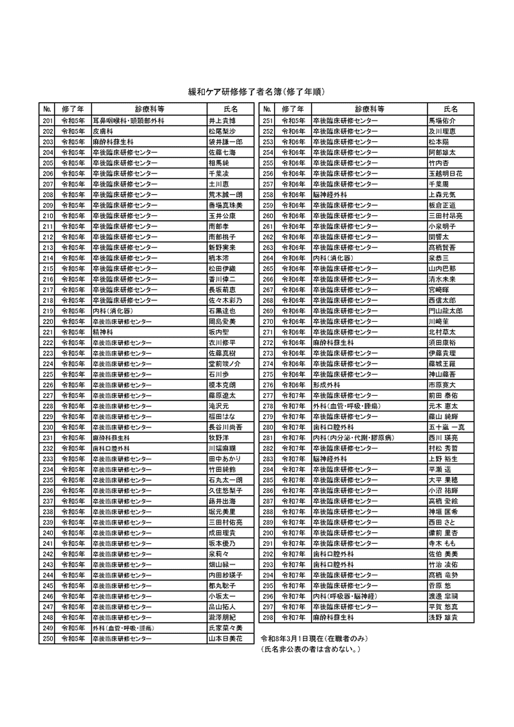 緩和ケア研修会修了者名簿(令和8年4月1日現在)