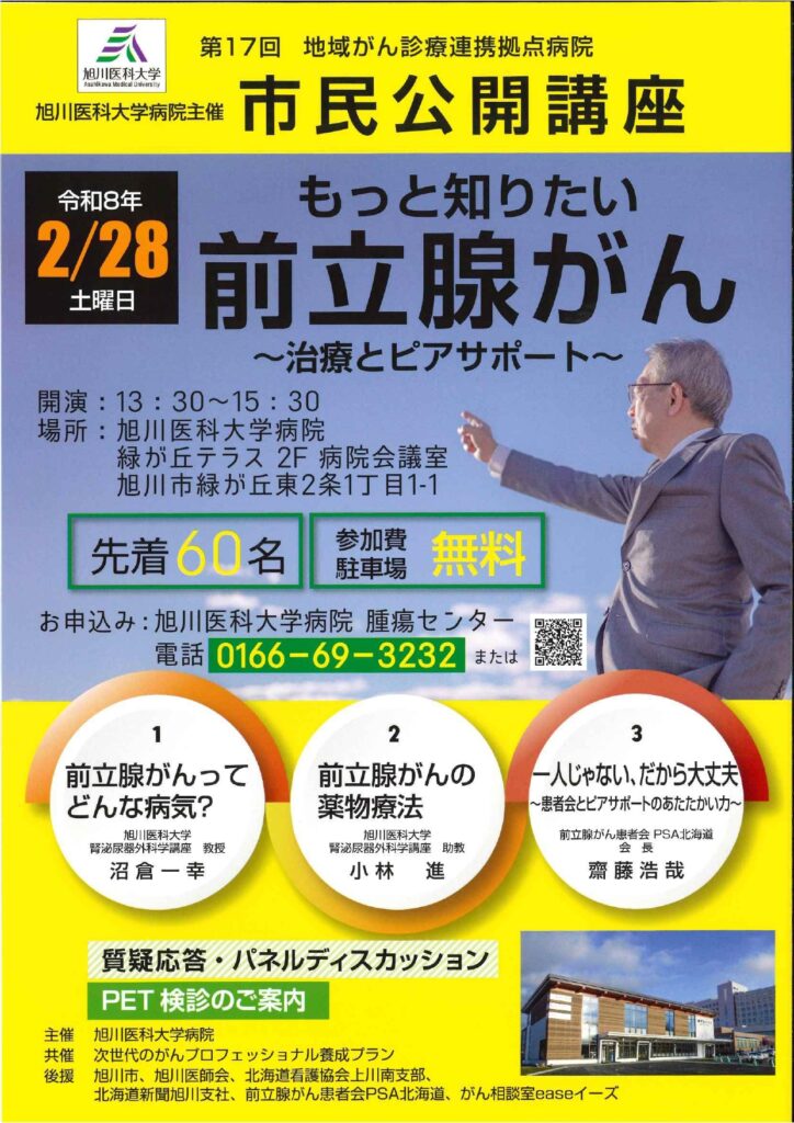 2025年2月8日(土)旭川医科大学病院緑が丘テラスにて、市民公開講座を開催します。