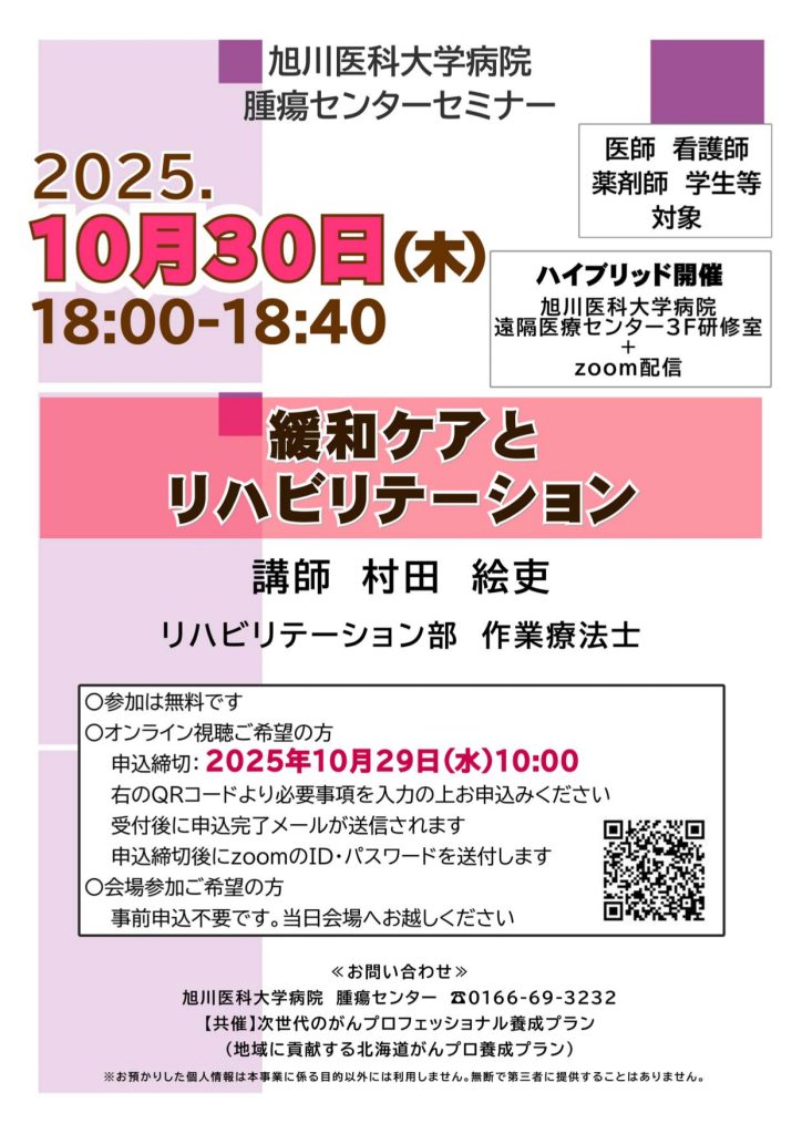 申込み・お問い合わせ先旭川医科大学病院 腫瘍センター(0166-69-3232)