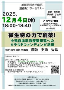 12/4「微生物の力で創薬!小児白血病治療薬研究へのクラウドファンディング活用」(腫瘍センターセミナー)