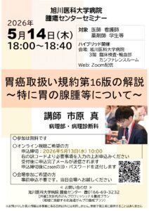 5月14日「胃癌取扱い規約第16版の解説 ~特に胃の腺腫等について~」(腫瘍センターセミナー)