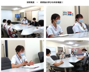 実習指導者研修・実践コースは、臨地看護学実習における看護学生の看護実践を指導する能力を高めることを目的に、臨地看護学実習場面での実習指導者のシャドーイングを通して、講義を中心とした基礎コースでの学びをより深めていく研修として企画されています。具体的な研修内容は、実際の基礎看護学実習や成人看護学実習における実習指導者の学生への指導場面を見学し、指導者と学生・教員との関わりや病棟スタッフとの調整などについて学んだ後、他の研修生とともに研修の学びについての意見交換を行うというものです。 →続きは写真をクリック