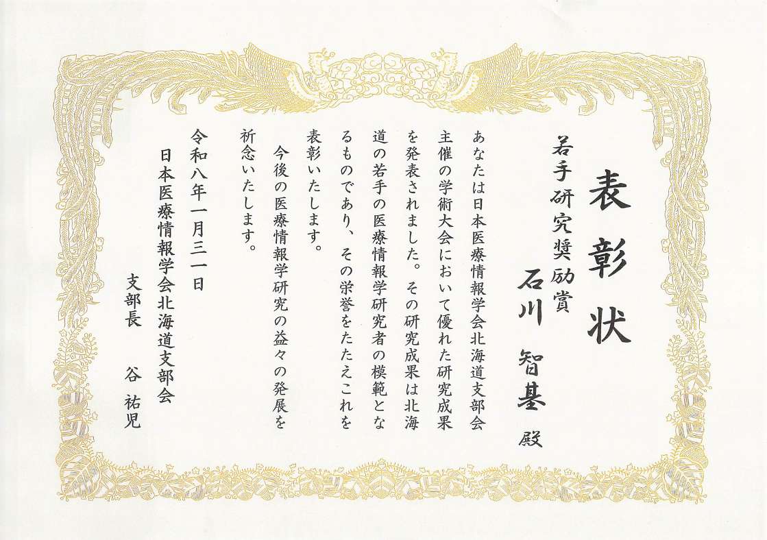 このたび、本学社会医学講座 石川智基講師が日本医療情報学会学術大会北海道支部会にて「若手研究奨励賞」を受賞いたしました。